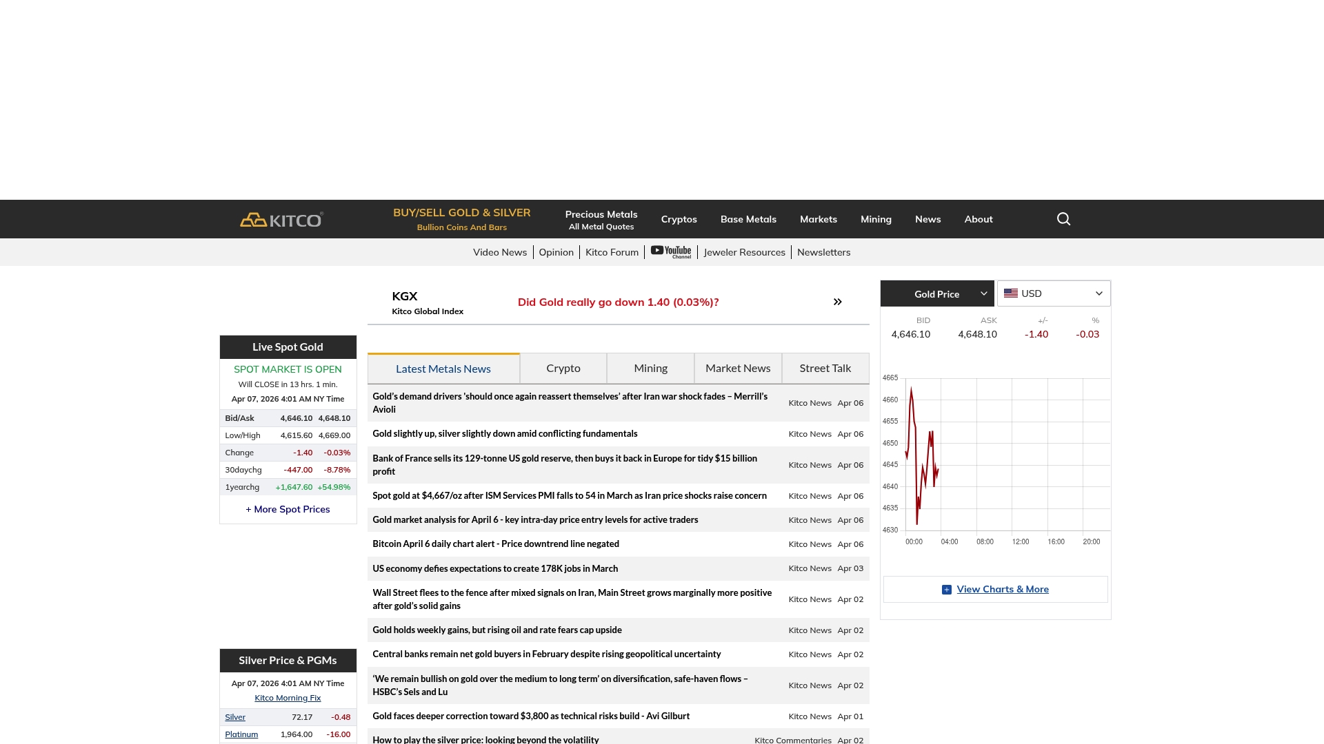 | Kitco | Real-time spot prices, market charts, and mining news | Extensive market data, diverse resources | Complex interface for new users | Basic access free, subscription required for premium content |