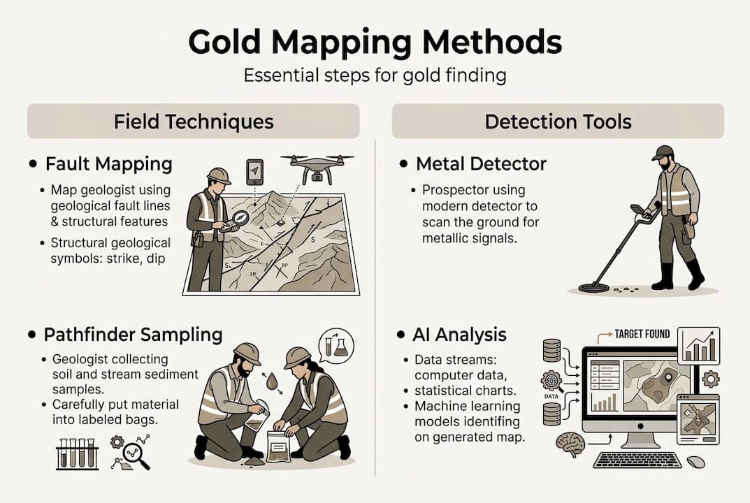 Once you understand why regional geology sets the stage, the next step is pinpointing actual gold zones using proven field and lab techniques. Gold doesn't distribute randomly within a geological terrane. It concentrates at specific structural and chemical traps, and knowing how to recognize those traps separates productive prospectors from frustrated ones.
